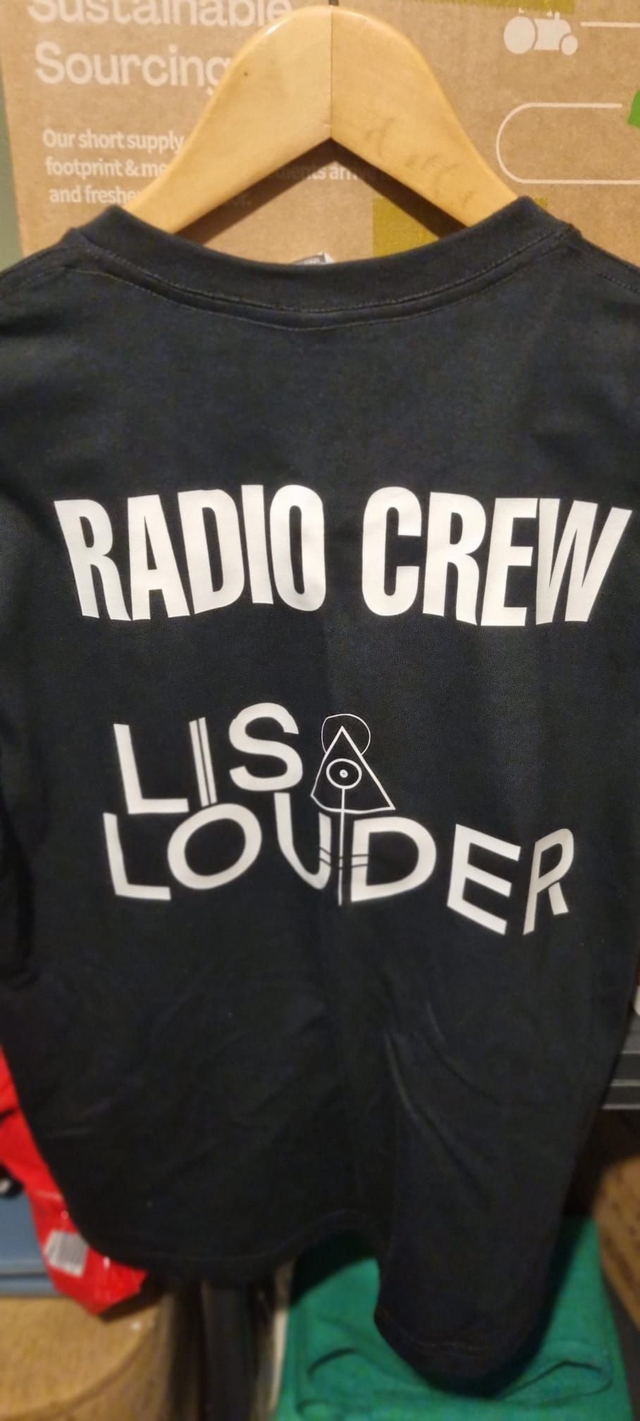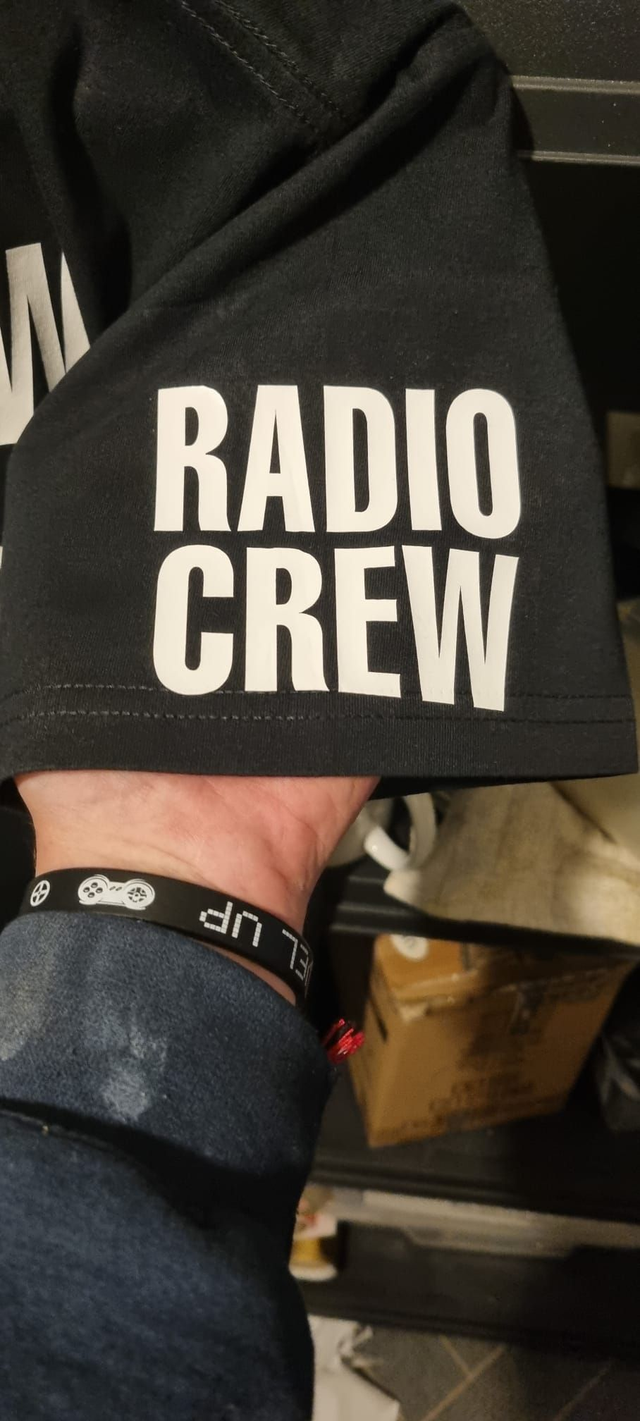 Biggest Disco Radio T-Shirt, Radio Crew & Your Logo On the back, Radio Crew On Sleeve.